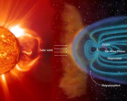 The Geo-Dynamo is the term used for the electromagnetic field present around the earth. This invisible shield around the earth extents for about a distance of 600,000 km from earth. There is a constant imbalance among the electromagnetic field and the forces exerted by the sun at a distance bit farther away from 600,000 km. The boundary of this electromagnetic field has lots and lots of charged particles captured in it. This is mainly the result of the solar winds [ The release of charged particles from the outer atmosphere of the sun / the corona of the sun ] This part of the magnetic field is called as the Van - Allen Belt in cosmic terms. The Moon [ The only natural satellite of earth ] also comes under this belt and hence it revolves around the earth in fixed orbits.